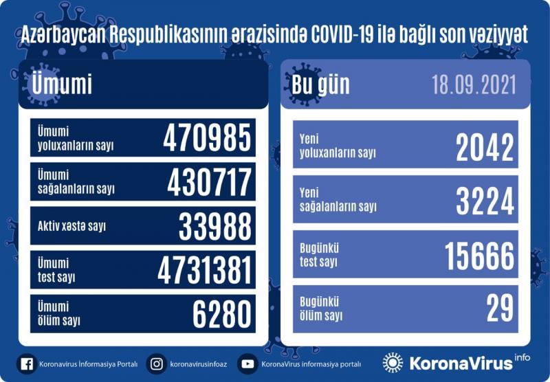 Nazirlər Kabineti yanında Operativ Qərargahdan verilən məlumata görə, analiz nümunələri müsbət çıxan 29 nəfər vəfat edib.