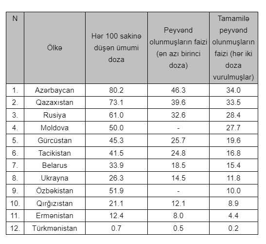 Nəşrin araşdırmasına görə, COVİD-19 əleyhinə vaksinasiya səviyyəsinə görə Azərbaycan MDB məkanında liderdir.